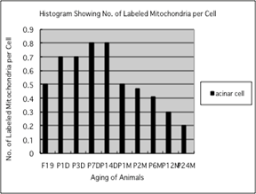the numbers of mitochondria per cell in respective aging groups. Fig. 9. Histogram showing
