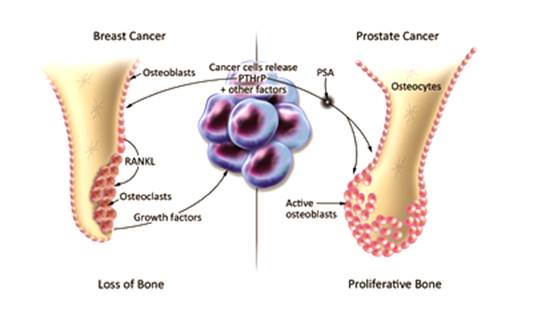 Bone is the third most common site for the metastatic cancer after lung and liver cancer .It is estimated that skeletal metastasis develops in 14-70% of all the tumour patients and autopsy based studies report the occurrence in 70% patients with carcinoma Breast and Prostate. In addition to ca prostate and ca prostate, many other tumours like lung, thyroid, kidney and melanoma have predilection for skeletal metastasis.From all the randomised trials in advanced cancer, it is estimated that one of these major skeletal events occurs on average every 3-6 months [[45]].